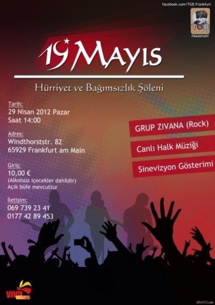 19 Mayıs kutlamalarını yasaklayan zihniyete inat 29 Nisan 2012 tarihinde Frankfurt'ta '19 Mayıs Bağımsızlık Şöleni' sloganıyla buluşuyoruz!